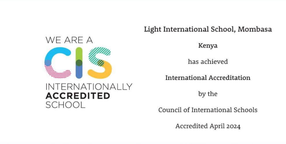 Achieving Excellence in Education: CIS Accreditation On April 19th, 2024, Light International School Mombasa reached a momentous milestone by obtaining International Accreditation from the prestigious Council of International Schools (CIS). This achievement marks a significant recognition of our commitment to delivering excellence in education and